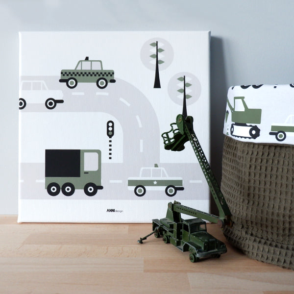 Canvas Auto schilderij 30x30 voor Voertuigen kamer - olijf groen