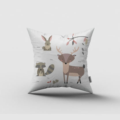 Leuk kussen voor babykamer of kinderkamer met bosdieren.