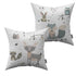 Achterzijde kussen: ook met bosdieren print in kleur taupe.